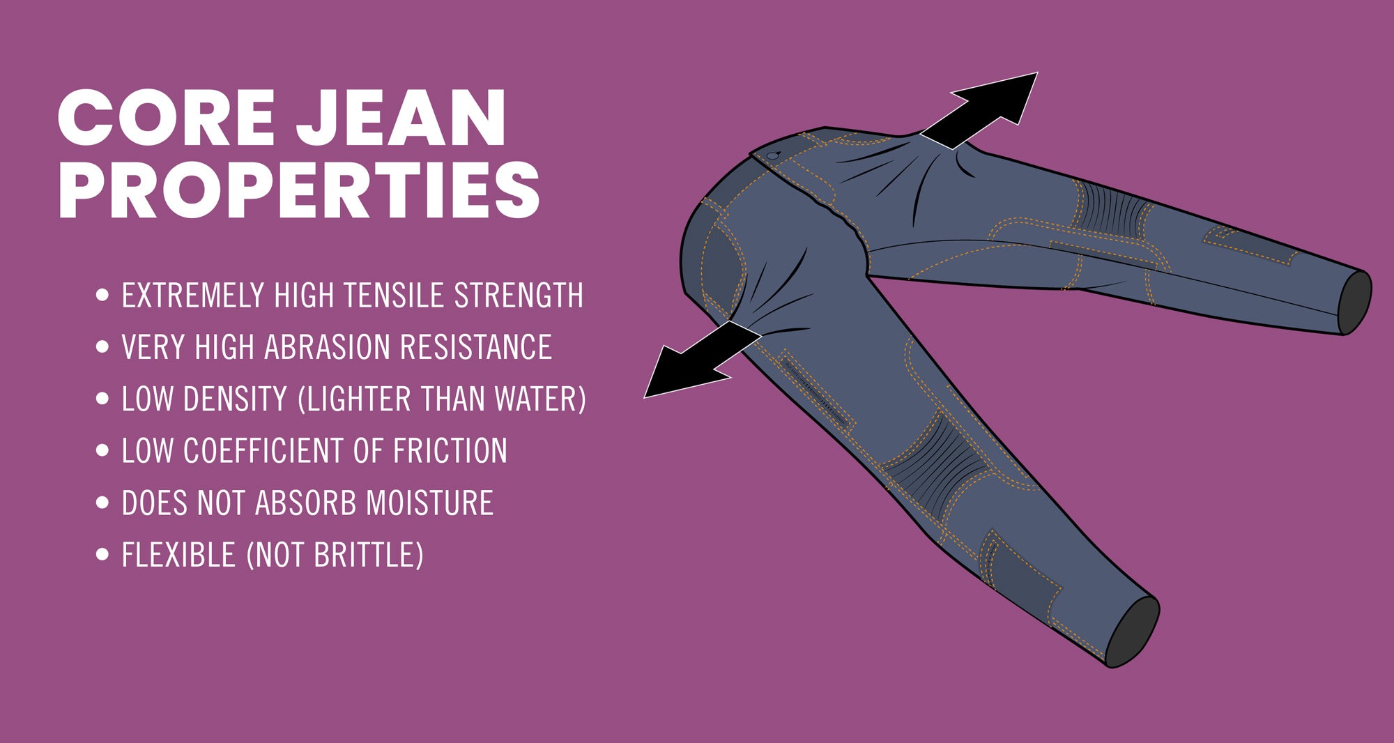 Reinforced with Dyneema®, our Origin Moto Jeans are woven with Ultra-High-Molecular-Weight-Polyethylene (UHMWPE), which makes them resistant to wear, tear, and abrasion.