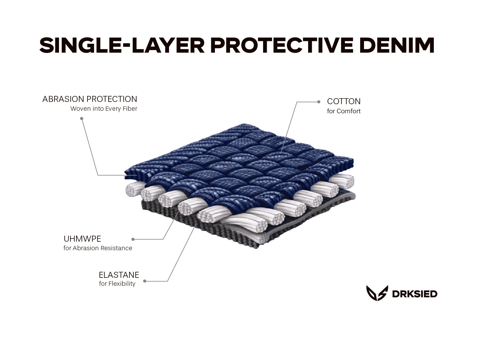 Unlike traditionalKevlar-lined jeans, these use a single-layer construction, meaning protection is built directly into the denim—making them lighter, more breathable, and less bulky.